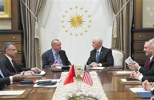 土耳其总统埃尔多安17日与到访的美国副总统彭斯在首都安卡拉举行会晤,双方就土耳其军队在叙利亚北部暂时停火和建立“安全区”问题达成协议。