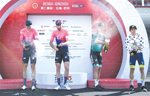 昨日下午,“环广西”结束了北海至钦州赛段152.3公里的角逐。和首个比赛日一样,也出现了一名车手包揽三件领骑衫的情况。在17日的首站比赛中,时隔一年回归“环广西”的哥伦比亚车手加维里亚夺得赛段冠军,拿到总成绩红色领骑衫、冲刺王蓝色领骑衫和最佳年轻车手白色领骑衫。昨日,德国车手帕斯卡·阿克曼强势反击,夺取了加维里亚的三件领骑衫。