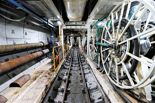 此次地铁5号线五新区间穿越邕江为何采用气垫式直排双模盾构法,与之前2、3号线下穿邕江挖掘工效有什么不同?孟庆军表示,南宁地铁2号线穿越邕江区间时由于泥岩底差,采用土压泥水盾构挖掘;3号线则采用直排泥水盾构。5号线穿越邕江区间由于有泥岩底层及穿越老旧居民区特点,同一区间出现2号线和3号线穿越邕江两类情况,于是改进施工工艺,承建方设计制造气垫式直排双模盾构机,在国内是首台。